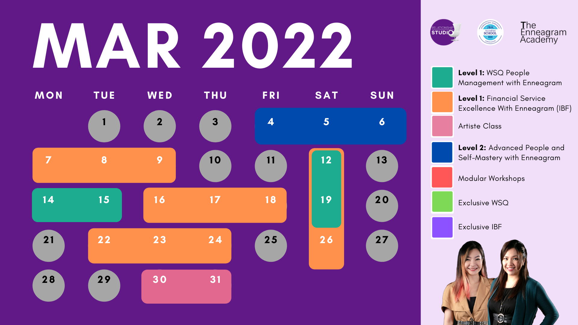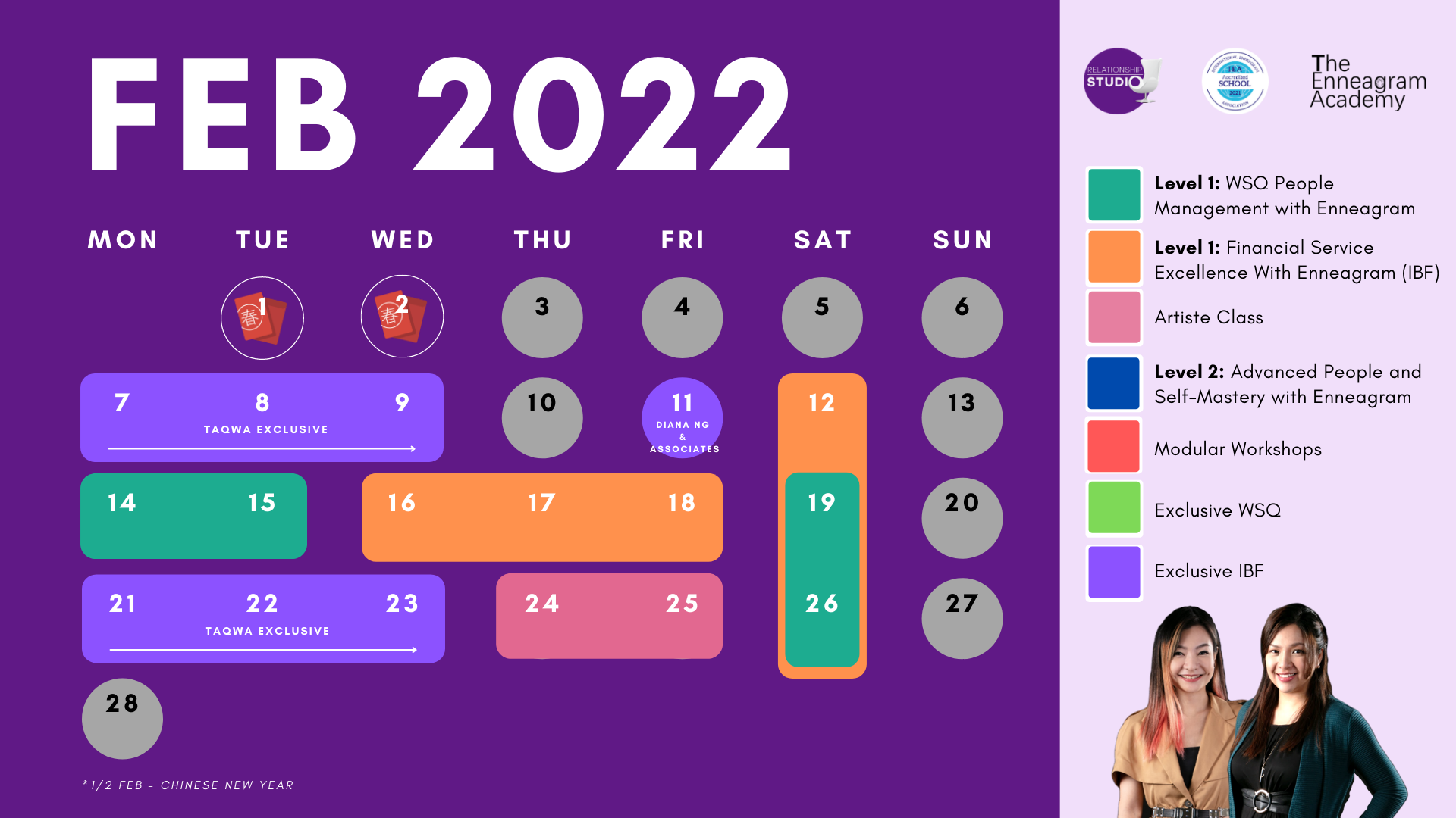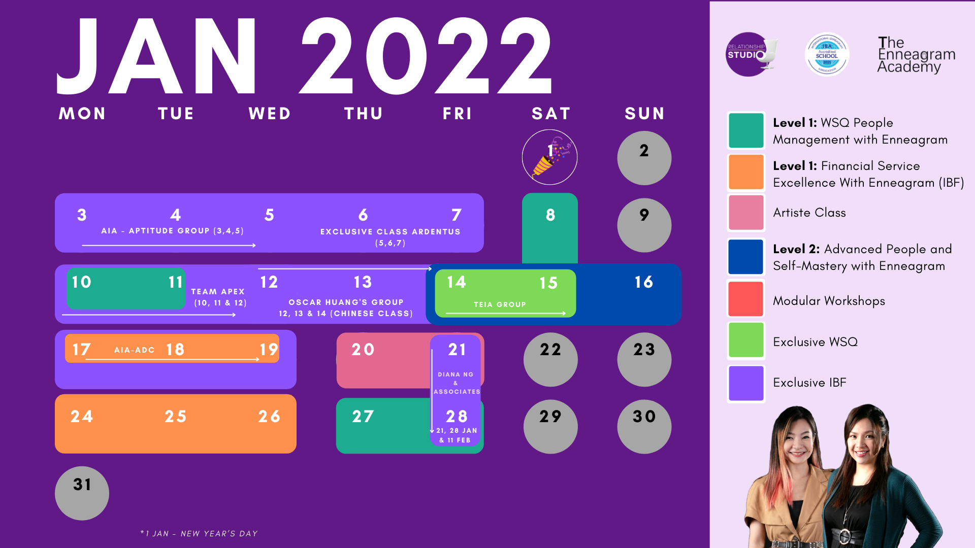 We are the only Enneagram course provider in Southeast Asia, that has both the International Enneagram Association (IEA) Accredited Training Programme and Accredited School status. So you can be assured that our courses are up to international standards!